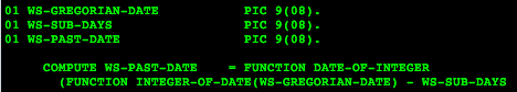 COMPUTE WS-GREGORIAN-DATE = FUNCTION DATE-OF-INTEGER